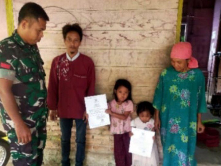 Akte Kelahiran yang diserahkan oleh Babinsa adalah milik Sindi Marlina (7) dan Aisyah Nurlina (4) anak dari Bapak Apdul Halim Warga Desa Manisak Kecamatan Ranto Baek