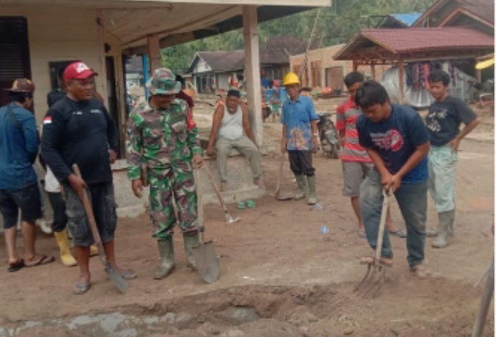 Babinsa Serka Tunggul Panggabena mengatak, pihaknya bersama masyarakat Desa binaan melaksanakan aksi bersih atau gotong-royong untuk membersihkan parit dari timbunan tanah dan lumpur pasca terjadinya banjir akibat hujan