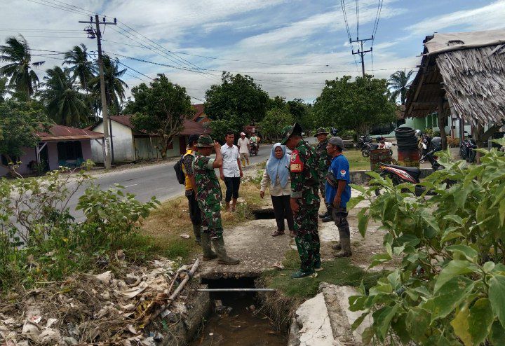 Portibi - Babinsa Koramil 05/PB Kodim 0212/Tapsel dipimpin Serka Rapotan Siregar bersama perangkat desa turun langsung melaksanakan pengecekan kondisi saluran air mengantisipasi penyumbatan dan banjir di Desa Rondaman Lombang Kecamatan Portibi Kabupaten Padang Lawas Utara, Minggu (19/01/2025)