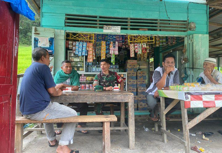 Kotanopan – Babinsa Koramil 14/Kotanopan Kodim 0212/Tapsel Pratu Roy Pakpahan melaksanakan Kegiatan komunikasi Sosial (Komsos) bersama warga masyarakat di Desa Patialo Kecamatan Kotanopan Kabupaten Mandailing Natal, Jumat (07/02/2025)