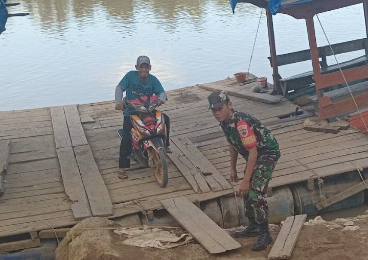 Dalam kegiatannya, Babinsa memantau langsung lokasi penyeberangan tradisional di desa setempat, dengan menyapa warga sekitar serta memastikan kegiatan penyebaran tradisional tetap berjalan aman dan kondusif