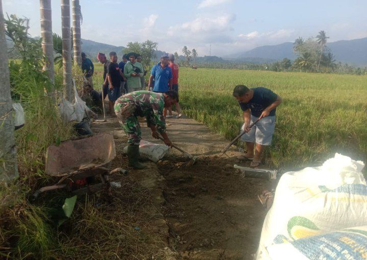 Babinsa Serka Tunggul Panggabean mengungkapkan, bahwa upaya nyata berbaur dengan warga dengan cara terjun langsung bersama warga masyarakat melakukan kegiatan kerja bakti gotong royong melakukan perbaikan jalan yang rusak sehingga membuat warga nyaman untuk melewati jalan menuju area pertanian dan untuk mengangkut hasil panennya