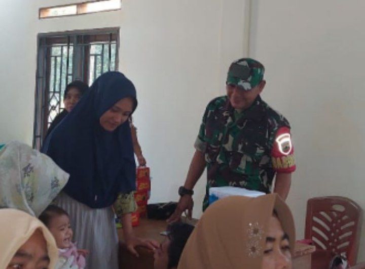 Puncak Sorik Marapi - Bentuk kepedulian kesehatan masyarakat di wilayah binaan, Babinsa Koramil 14/Kotanopan Kodim 0212/Tapsel Sertu Maris melaksanakan pendampingan kepada tim Kesehatan Puskesmas Puncak Sorik Marapi dalam memberikan pelayanan kesehatan masyarakat. Bertempat di Desa Laru Huta Baru Kecamatan Puncak Sorik Marapi Kabupaten Mandailing Natal, Rabu (12/02/2025)