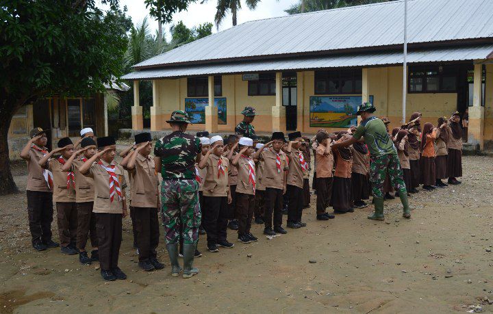 Anggota Satgas TMMD Kodim Tapsel Latih PBB Bentuk Karakter Dan Disiplin Murid Sekolah Dasar