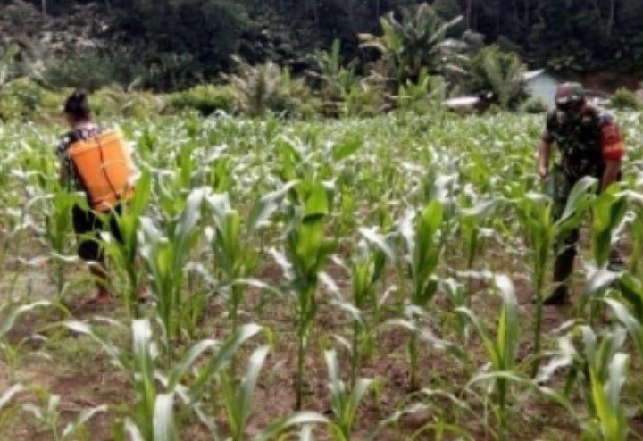 Dalam kegiatan tersebut, Babinsa juga memberikan dorongan serta motivasi kepada para petani agar lebih maksimal dalam merawat tanaman jagung mereka