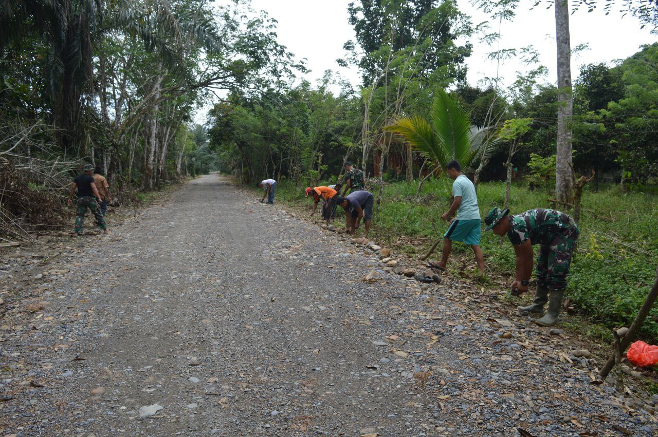 Dan SKK, Lettu Inf Jonri Situmorang Disela-sela kegiatannya saat di temui di lokasi mengatakan, sampai saat ini pengerjaan pengerasan jalan terus di upayakan dibantu masyarakat sekitar