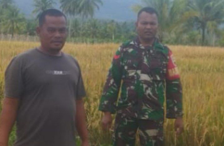 Babinsa Koptu Dodi dalam kesempatan tersebut menyampaikan, pihaknya sedang melakukan pendataan tentang potensi panen pada waktu dekat dengan memantau langsung ke sawah