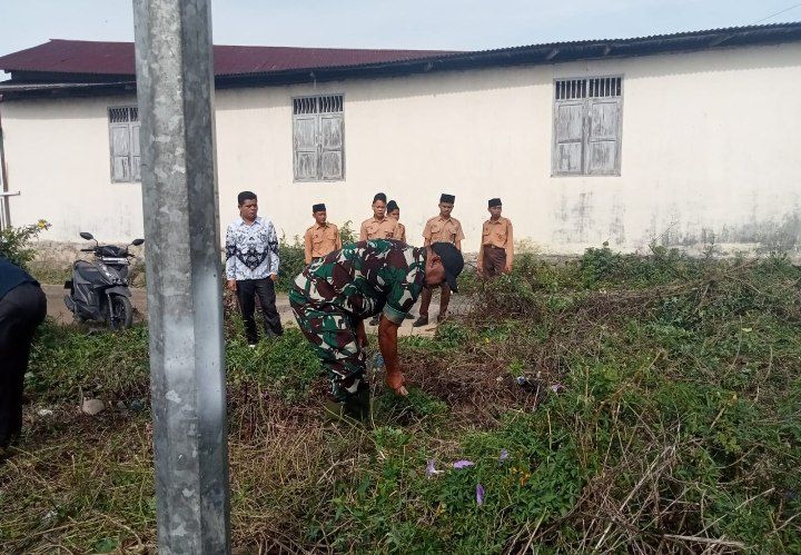Babinsa Serma Ahmad Danili dalam kegiatan tersebut menyampaikan, bahwa pihaknya secara gotong royong bersama guru dan siswa-siswi melaksanakan pembersihan sampah dan rumput serta pembersihan parit sekita lingkungan sekolah