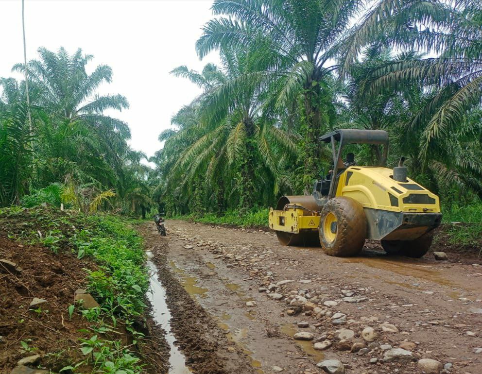 Berdasarkan pantauan di lapangan, terlihat alat berat tengah meratakan material batu yang telah disiapkan di tengah jalan, tepatnya di Desa Pintu Padang Kecamatan Ulu Barumun