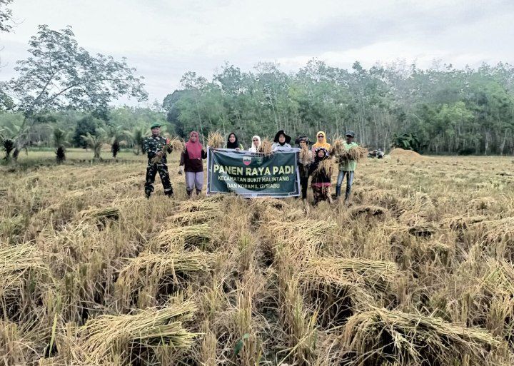 Bukit Malintang – Dalam upaya mendukung program swasembada pangan, Koramil 12/Siabu Kodim 0212/Tapsel dipimpin Peltu Sulhan Panjaitan bersama Forkopimcam Bukit Malintang dan Kelompok Tani Karya Tani 3 Desa Malintang Julu melaksanakan kegiatan Panen Raya Padi di area Persawahan Desa Desa Malintang Julu Kecamatan Bukit Malintang Kabupaten Mandailing Natal, Sabtu (22/03/2025)
