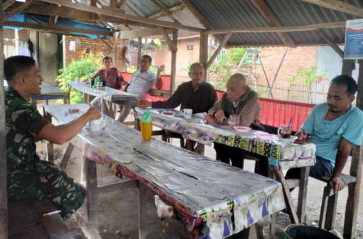 Siabu – Babinsa Koramil 12/Siabu Kodim 0212/Tapsel Serda Edward Simanjuntak melaksanakan Komunikasi Sosial (komsos) menjalin silaturahmi dengan sesepuh dan warga desa binaan di Desa Sihepeng Opat Kecamatan Siabu Kabupaten Mandailing Natal, Minggu (06/05/2025)