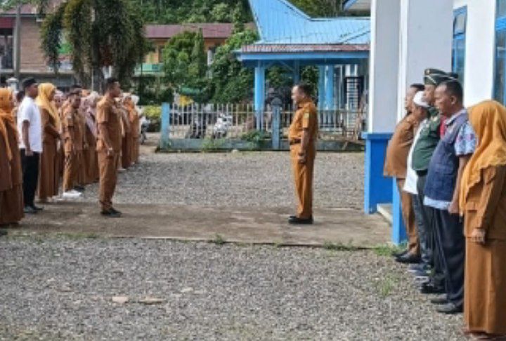 Lingga Bayu - Babinsa Koramil 16/Batang Natal Kodim 0212/Tapsel Sertu Holis Nasution ikuti Apel gabungan ASN se-Kecamatan Lingga Bayu bertempat di halaman Kantor Camat Lingga Bayu Kabupaten Mandailing Natal, Selasa (08/04/2025)