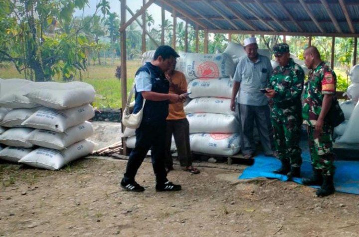 Siabu - Dalam rangka percepatan serapan gabah dan untuk mendukung peningkatan kesejahteraan petani dan memastikan stabilitas harga hasil panen, Pasiter Kodim 0212/Tapsel dan Danramil 12/Siabu beserta dan anggota Babinsa bersama Tim Serap Gabah Bulog KC. Padangsidimpuan melaksanakan pendampingan penyerapan gabah petani di Kecamatan Siabu Kabupaten Mandailing Natal (Madina), Sumatera Utara, Kamis (10/04/2025)