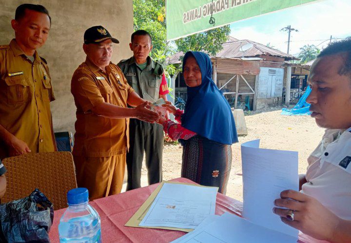 Sosa – Babinsa Koramil 09/Sosa Kodim 0212/Tapsel Serka Bornok Siregar melaksanakan pendampingan pada penyaluran Bantuan Langsung Tunai (BLT) Dana Desa (DD), di Desa Pasar Ujung Batu, Kecamatan Sosa Kabupaten Padang Lawas, Sabtu (19/04/2024)