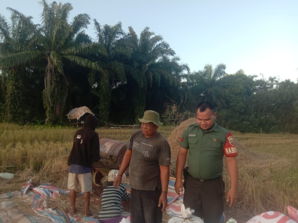 Pendampingan terhadap petani terus dilakukan oleh Babinsa guna meningkatkan hasil pertanian sehingga mewujudkan ketahanan pangan. Dalam kesempatan ini Babinsa Koptu Darwin Sormin menyampaikan, kegiatan pendampingan kepada kelompok tani merupakan kegiatan rutin yang kami laksanakan, untuk membantu memanen padi warganya bersama kelompok tani.