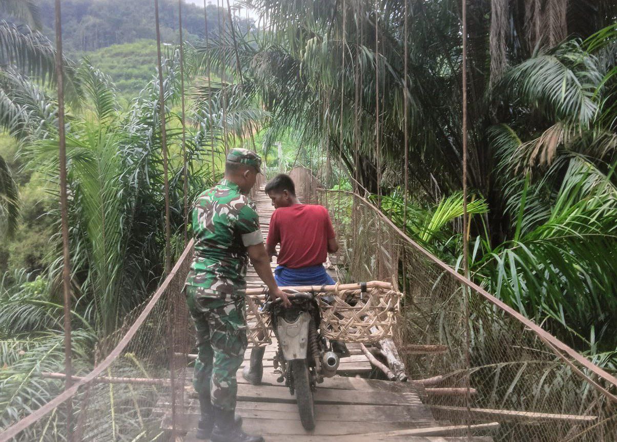 Dikatakan Babinsa Pratu Alwi, bahwa pihaknya memonitor dan membantu para warga saat melintasi jembatan gantung guna kelancaran warga saat melintas