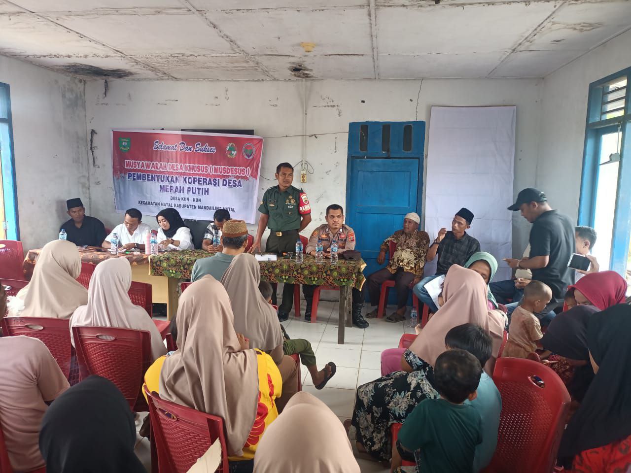 Natal – Dalam rangka mendukung percepatan implementasi Instruksi Presiden Nomor 9 Tahun 2025 tentang Percepatan Pembentukan Koperasi Desa/Kelurahan Merah Putih, Babinsa Koramil 17/Natal Kodim 0212/Tapsel Sertu Afrizal bersama Bhabinkamtibmas menghadiri undangan Musyawarah Desa Khusus (Musdessus) yang dilaksanakan di Ruang Rapat Kantor Desa Kun Kun Kecamatan Natal Kabupaten Mandailing Natal, Sabtu (31/05/2025)