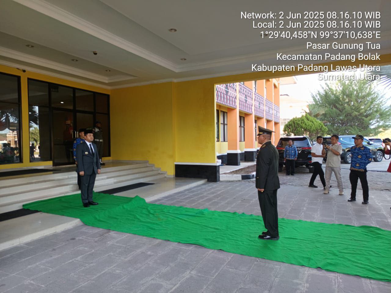 turut hadir dalam upacara tersebut, Bupati Paluta selaku Inspektur Upacara, Ketua DPRD Kab. Paluta, Dandim 0212/TS, Kajari Paluta, Sekretaris Daerah Kab. Paluta,Pimpinan OPS, Pabung Kab. Paluta Dim 0212/TS, Para Camat se-Kab Paluta, Danramil 05/PB, Kapolsek Padang Bolak, Dankipan C Yonif 123/RJW, Ketua TP-PKK Kab. Paluta, Ketua Persit Ranting Gunung Tua, Ketua Persit Ranting Kipan C dan Ibu Ketua Bhayangkari Polsek Padang Bolak