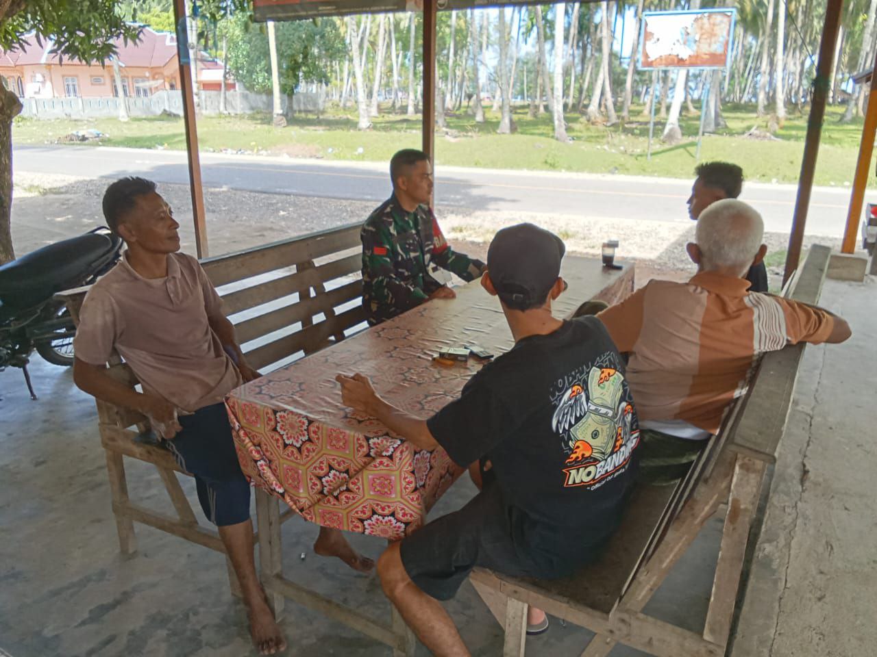 Natal – Babinsa Koramil 17/Natal Kodim 0212/Tapsel Praka A Laoli melaksanakan komunikasi sosial (komsos) dengan menyapa warga dan berbincang santai dengan warga di wilayah desa binaan. Komsos kali ini terkait situasi keamanan dan ketertiban serta mewaspadai dampak cuaca hujan di Desa Panggautan Kecamatan Natal Kabupaten Mandailing Natal, Jumat (20/06/2025)