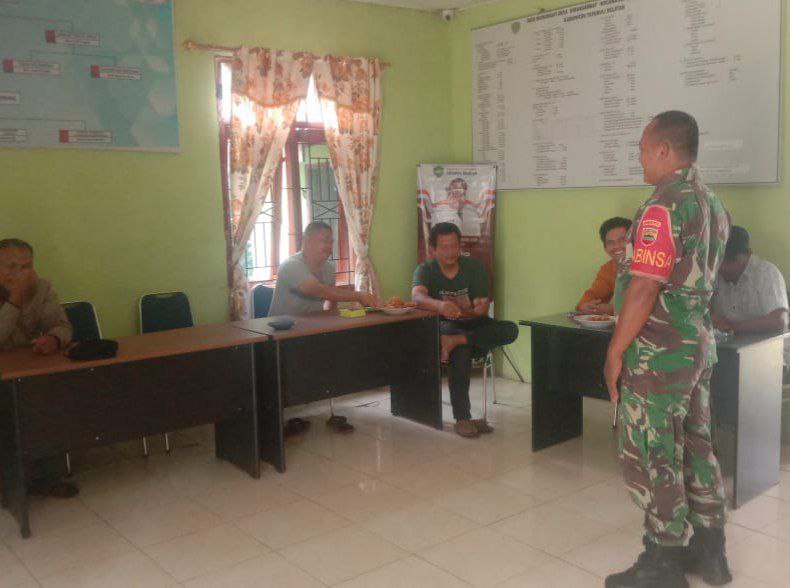Babinsa juga menyampaikan kepada para perangkat desa utuk sama-sama menghimbau warganya untuk selalu menjaga Keamanan, kenyamanan dan ketentraman di lingkungan masing-masing