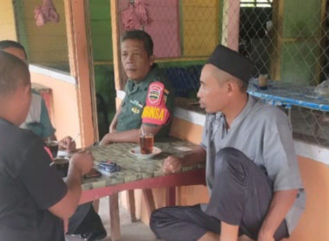 Natal – Babinsa Koramil 17/Natal Kodim 0212/Tapsel Serda Wendriadi sembari makan minum di warung, melaksanakan Komsos berkumpul dengan warga masyarakat di Desa Panggautan Kecamatan Natal Kabupaten Mandailing Natal, Rabu (25/06/2025)