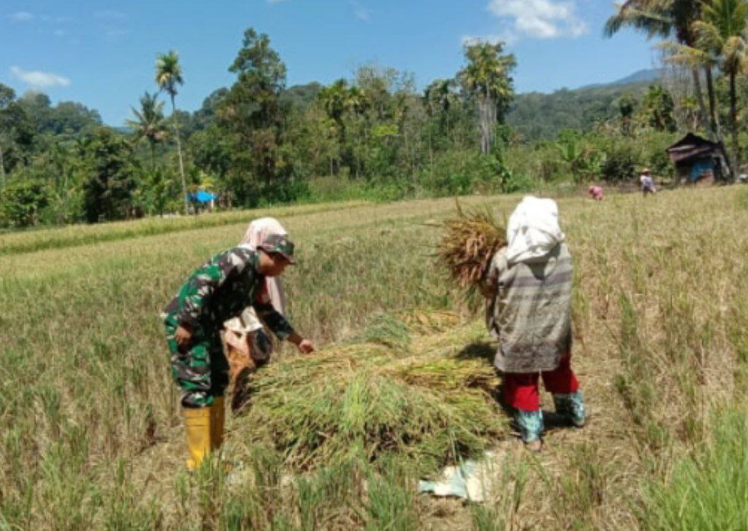 Babinsa Koramil 14/Kotanopan Monitoring dan Pendampingan Panen Padi di Desa Usor Tolang