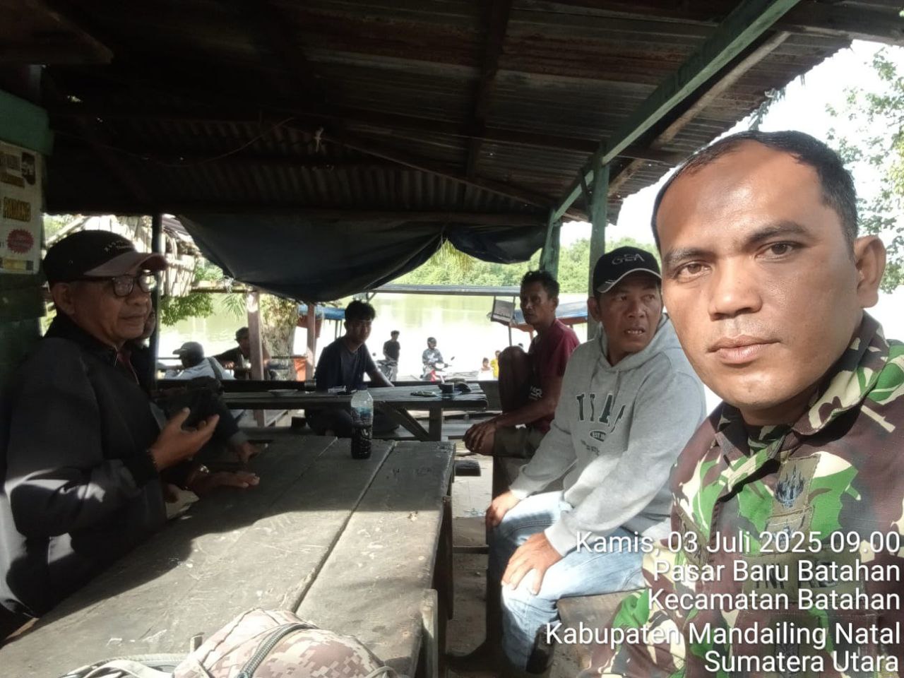 Batahan - Dalam upaya meningkatkan hubungan antara Babinsa dan warga di wilayah binaan, Babinsa Koramil 20/Batahan Kodim 0212/Tapsel Serda Mujur Ritonga melaksanakan komunikasi sosial (Komsos) dengan warga beraktivitas dan tinggal di pinggiran Sungai di Kelurahan Pasar Baru Batahan Kecamatan Batahan Kabupaten Mandailing Natal, Kamis (03/07/2025)