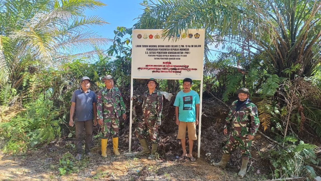 Seperti hari ini, Personel Satgas yang dipimpin Serma Gafar Lubis melaksanakan patroli di kawasn TNBG yang merupakan kawasan hutan dalam penguasaan pemerintah di Desa Desa Aek Nabara Kecamatan Batang Natal Kabupaten Mandailing Natal, Kamis (03/07/2025)