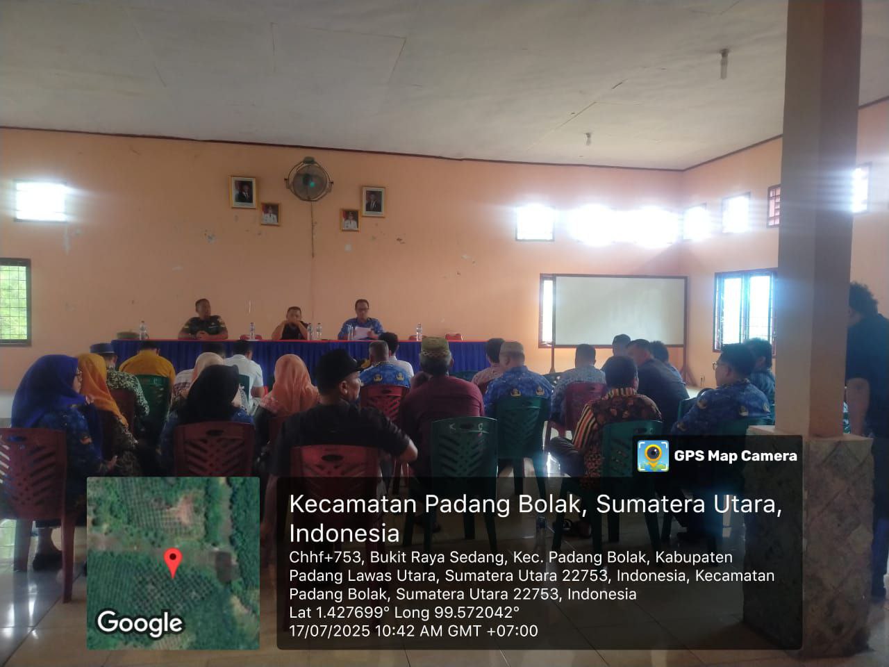 Padang Bolak Tenggara – Babinsa Koramil 05/PB Kodim 0212/Tapsel Serka Adi Susanto melaksanakan kegiatan Rapat bersama apparat pemerintah dan stakeholder Kecamatan Padang Bolak tenggara dalam rangka pembentukan Panitia peringatan HUT RI ke-80 yang dilaksanakan di Aula Kantor Camat Padang Bolak Tenggara Kabupaten Padang Lawas Utara, Kamis (17/07/2025)