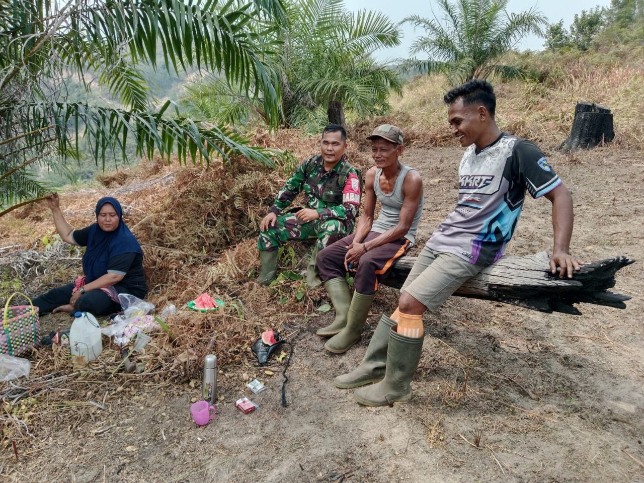 “kebetulan kita singgah dan istirahat di sini, kami ingin menghimbau warga yang sedang membersihkan lahan untuk tidak membakar lahan, ini untuk mencegah kebakaran hutan dan lahan” papar Babinsa