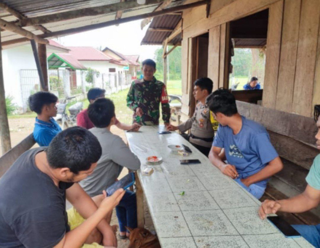 Pada kesempatan ini Babinsa dan juga Bhabinkamtibmas menyampaikan kepada pemuda desa untuk menciptakan keamanan dan ketertiban lingkungan serta mengingatkan tentang pencegahan peredaran Narkoba dan permainan judi online di lingkungan masyarakat