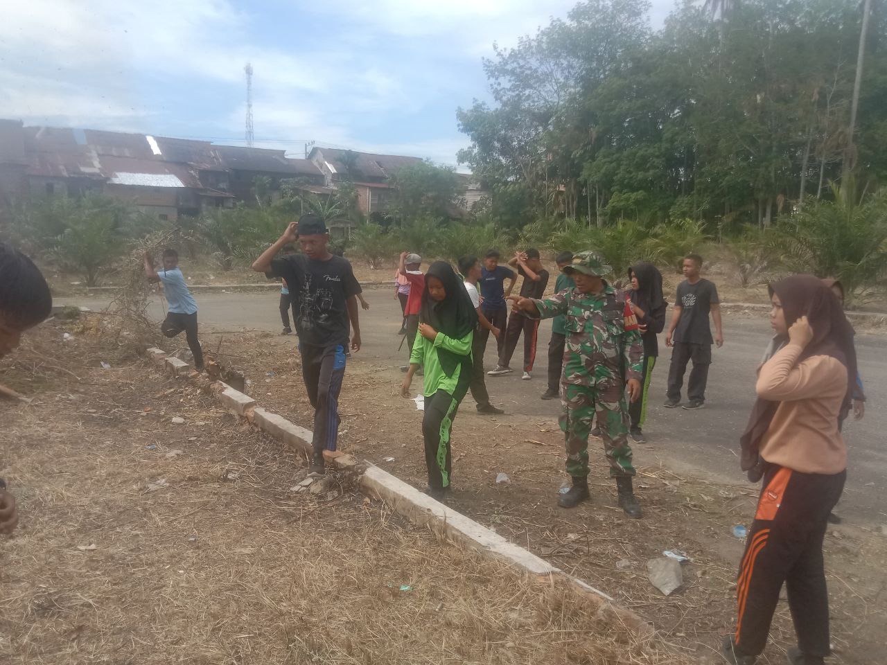 Bersama Warga dan Pelajar, Babinsa Koramil 07/Sosopan Gotong Royong Bersihkan Lapangan Upacara HUT RI ke-80