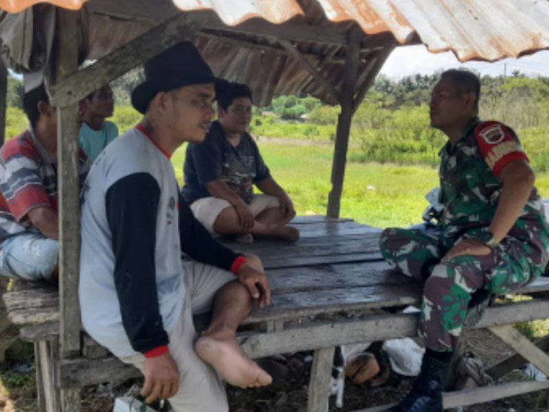 Dalam kegiatan Komsos tersebut, Babinsa Koptu RP. Rangkuti menyambangi beberapa warga yang sedang berkumpul dan berbincang-bincang dengan mereka tentang bahaya Karhutla.