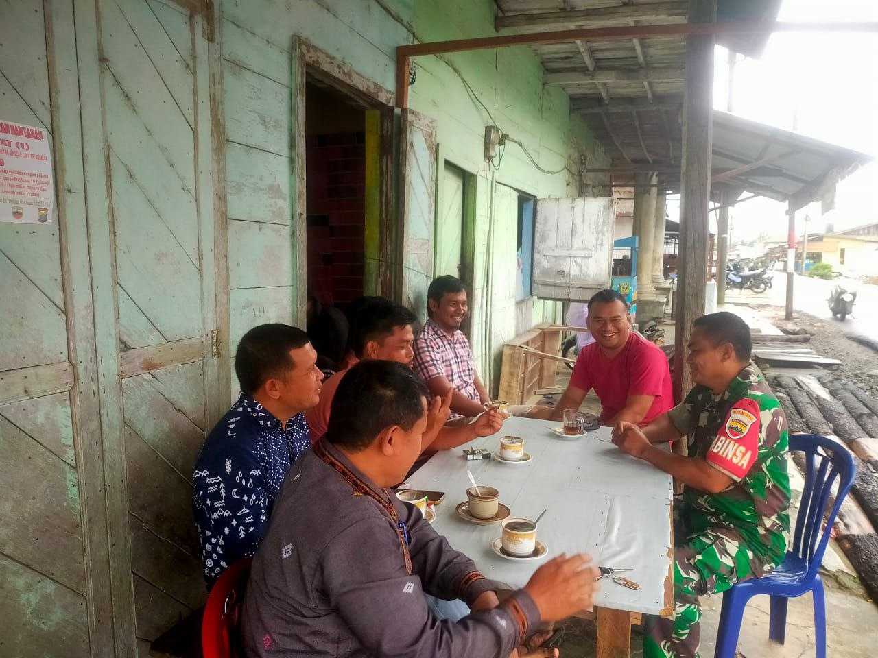 Saipar Dolok Hole - Upaya menjalin keakraban dengan warga masyarakat sekaligus menjaring informasi di wilayah binaan, Babinsa Koramil 04/SDH Kodim 0212/Tapsel Serda Hendra PaneSelatan melaksanakan Komunikasi Sosial (Komsos) sambal ngopi bersama warga di sebuah warung kopi di Kelurahan Pasar Sipagimbar Kecamatan Saipar Dolok Hole Kabupaten Tapanuli Selatan, Selasa (16/09/2025)
