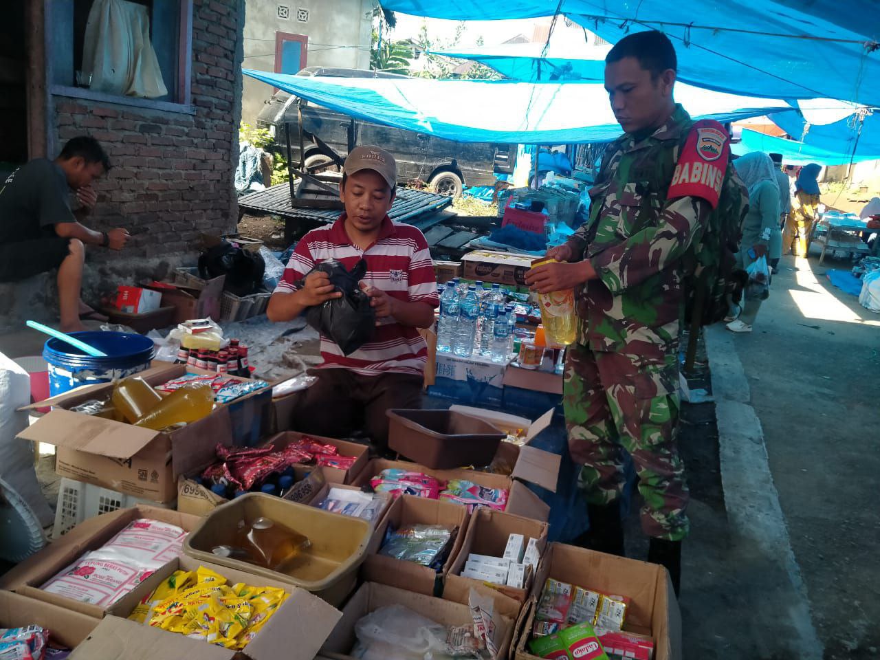 “selain itu, juga kita berkomunikasi dengan pedagang dan warga, jadi kita selaku Babinsa juga berinteraksi dengan pedagang dan pembeli untuk mengetahui kondisi distribusi barang dan keluhan mereka” imbuhnya