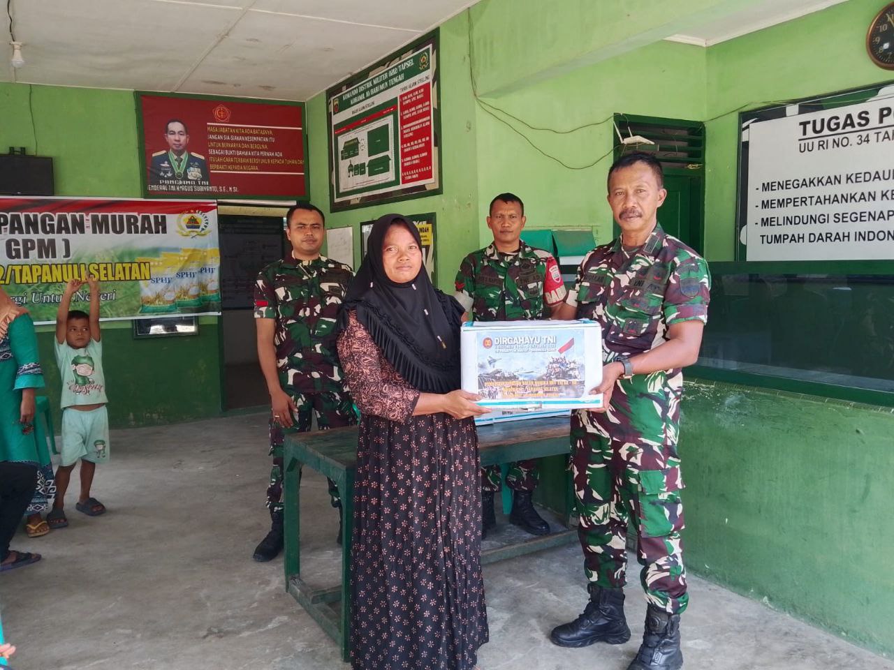 Barumun Tengah – Dalam rangka memperingati Hari Ulang Tahun (HUT) TNI ke-80 tahun 2025, Koramil 10/Barteng Kodim 0212/Tapsel menggelar kegiatan bakti sosial memberikan paket sembako kepada warga masyarakat di Makoramil 10/Barteng Kecamatan Barumun Tengah Kabupaten Padang Lawas, Minggu (21/09/2025).