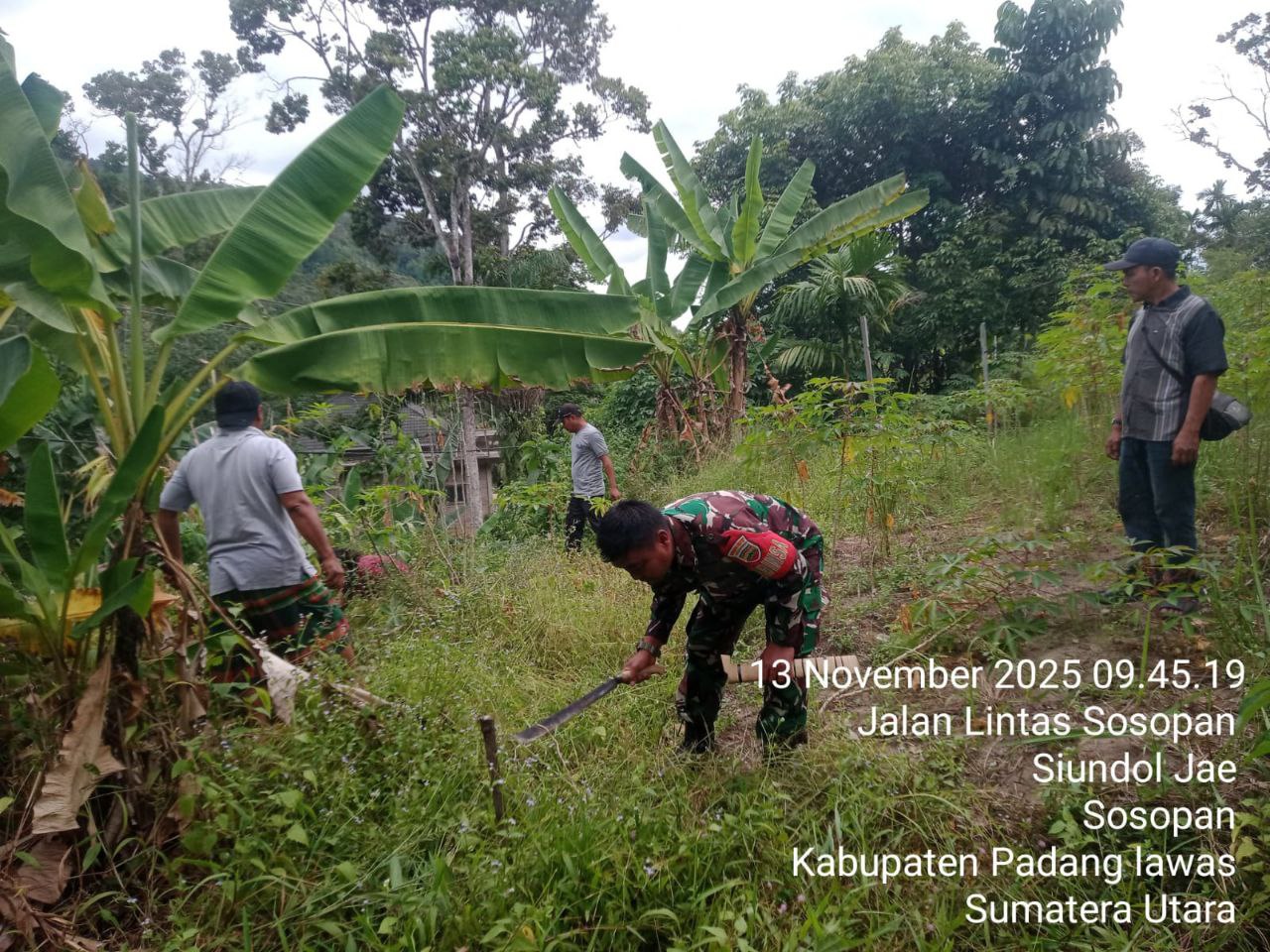 Sosopan – Dalam upaya mendukung percepatan pembangunan Koperasi Desa/Kelurahan Merap Puith (KDKMP) Babinsa Koramil 07/Sosopan Kodim 0212/Tapsel Sertu Juniardi bersama Warga Melaksanakan Kegiatan Kerja Bakti Penyiapannya lahan lokasi pembangunan Koperasi Merah Putih Bertempat Lokasi Pembangunan KDKMP Desa Siundol Jae Kecamatan Sosopan Kabupaten Padang Lawas, Kamis (13/11/2025)