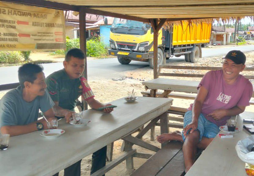 Muara Batang Toru - Babinsa Koramil 01/Batang Toru Kodim 0212/Tapsel Kopda Musa Sinaga melaksanakan monitoring wilayah dilanjutkan Komunikasi Sosial (Komsos) dengan warga desa binaan di Bandar Hapinis Kecamatan Muara Batang Toru Kabupaten Tapanuli Selatan, Senin (17/11/2025)
