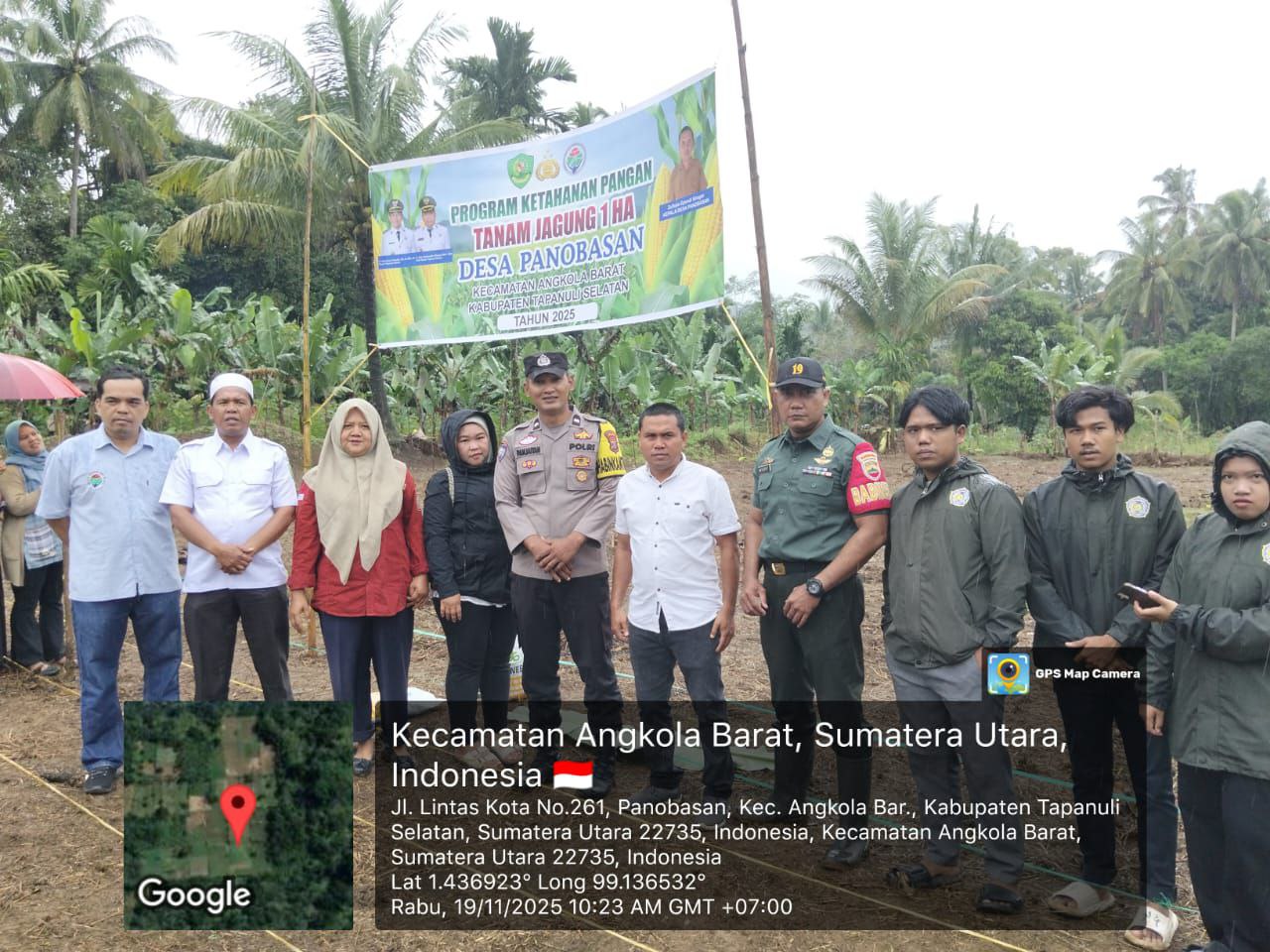 Kegiatan penanaman jagung perdana di lahan seluas 1 Hektar dihadiri Camat Angkola Barat, Kepala Desa Panobasan, Babinsa Koramil 19/Siais, KCD dan PPL , Mahasiswa UMTS Padangsidimpuan dan Warga Desa Panobasan
