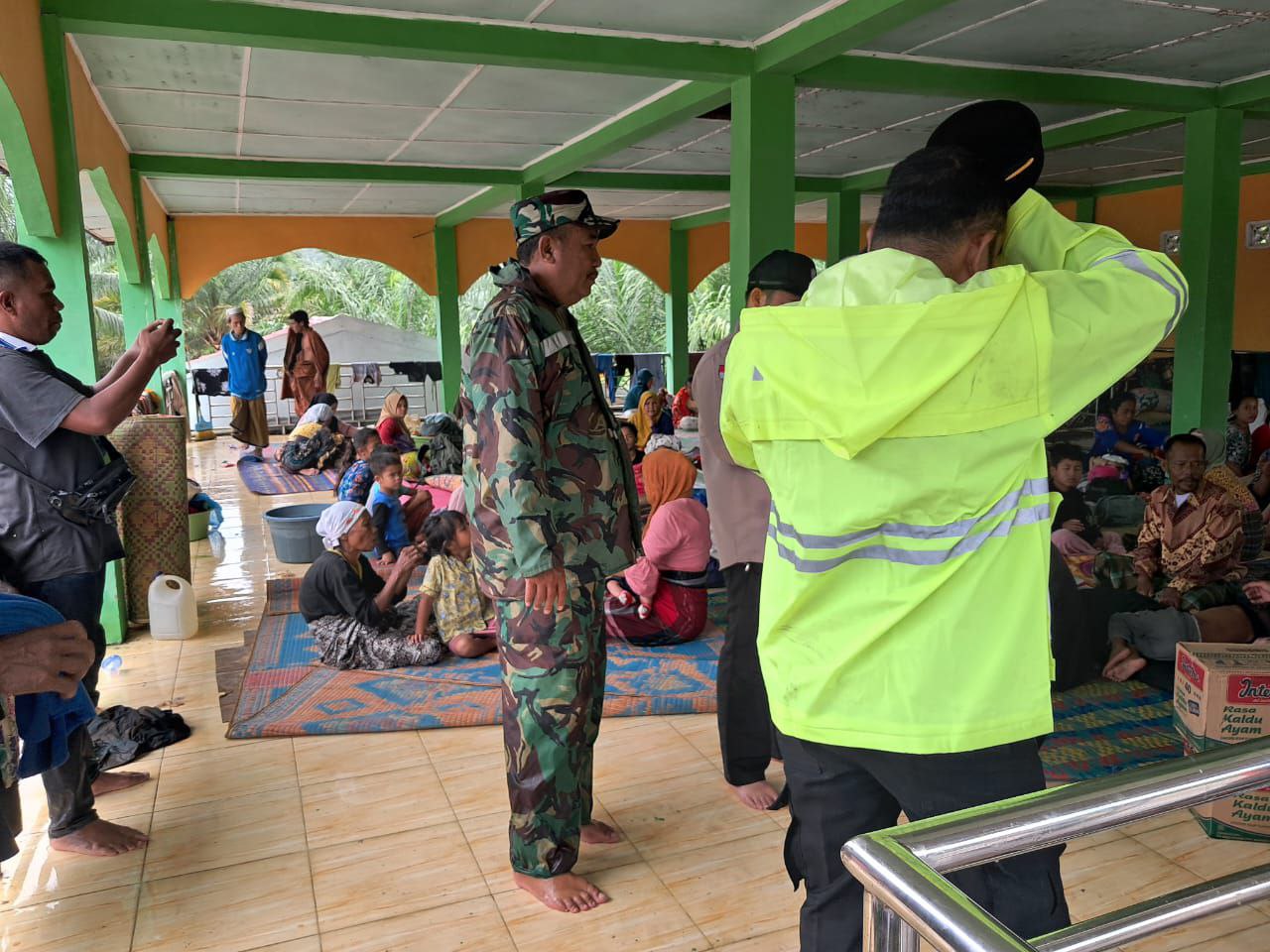 Siabu – Babinsa Koramil 12/Siabu Kodim 0212/Tapsel dipimpin langsung Danramil Kapten Inf Syaiful Abdi bersama personel gabungan instansi terkait melakukan evakuasi warga akibat banjir di Desa Muara Batang Angkola ke SDN Desa Tanggabosi Kecamatan Siabu Kabupaten Mandailing Natal, Rabu (26/11/2025)