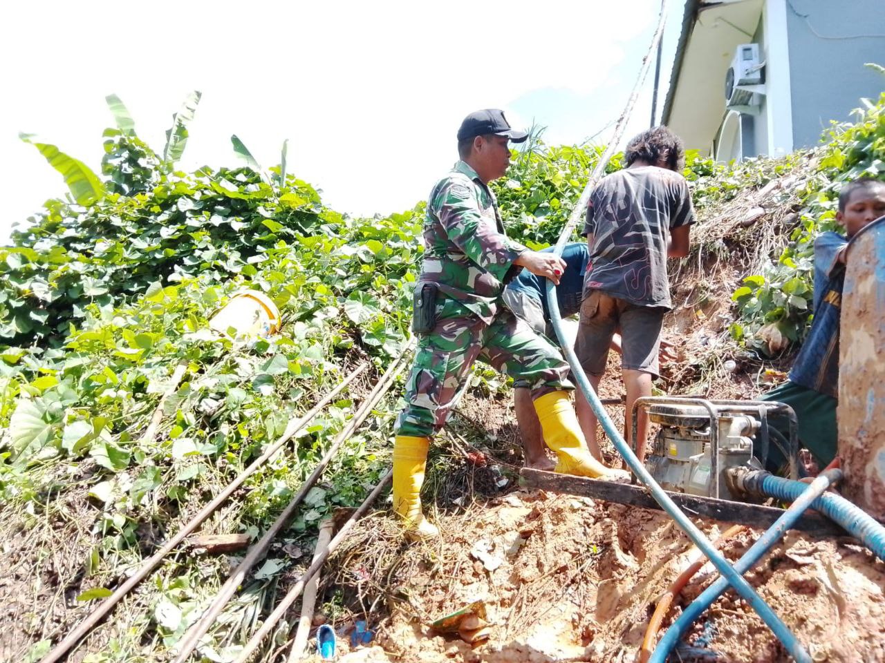 Babinsa Sertu AY. Nasution mengatakan, TNI hadir untuk membantu masyarakat dalam situasi darurat bencana dengan memberikan solusi cepat dan tepat