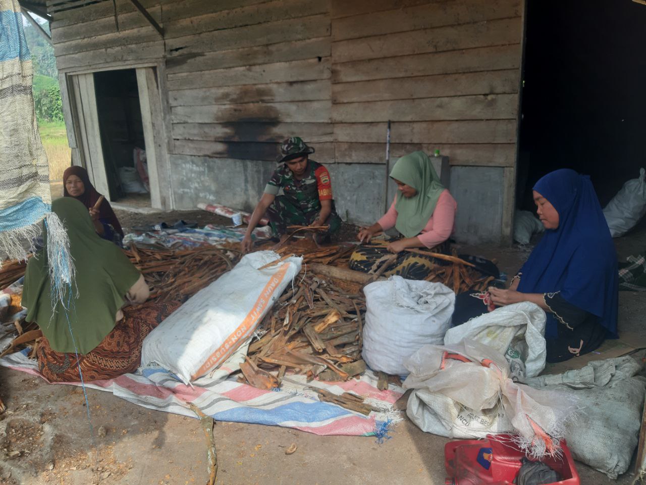 Dolok - Babinsa Koramil 06/Dolok Kodim 0212/Tapsel Serka Ilman Syafaat melaksanakan kegiatan komsos sekaligus memotivasi warga masyarakat dalam pengolahan kayu manis di Desa Bunut Kecamatan Dolok Kabupaten Padang Lawas Utara, Rabu (14/01/2026)