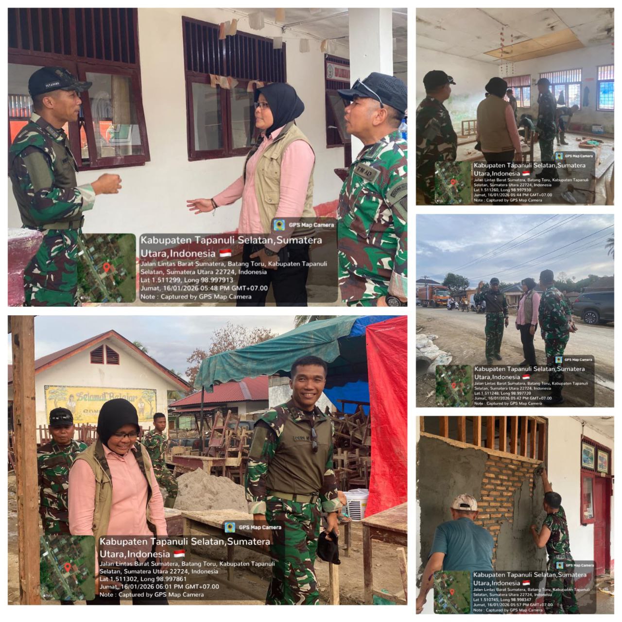 “Kehadiran prajurit TNI di sini untuk membantu sekolah yang terdampak banjir bandang beberapa waktu lalu. Kami ingin anak-anak bisa segera kembali bersekolah dengan aman dan nyaman,” ujar Dandim, Jumat (16/1/2026).