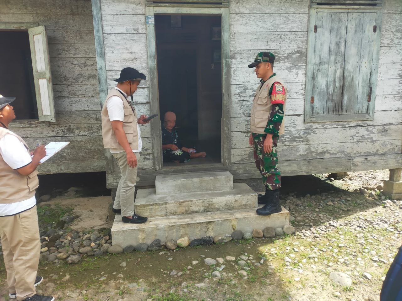 Dalam kegiatannya, Tim Verifkasi bersama Babinsa melaksanakan pendataan warga yang rumahnya mengalami kerusakan berat, sedang dan ringan serta tidak layak huni akibat terjangan banjir