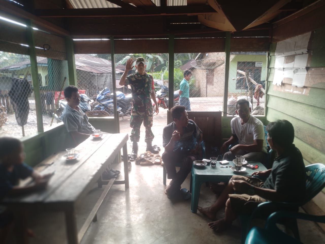 Babinsa Koramil 06/Dolok Jalin Komsos di Warung Kopi bersama Warga