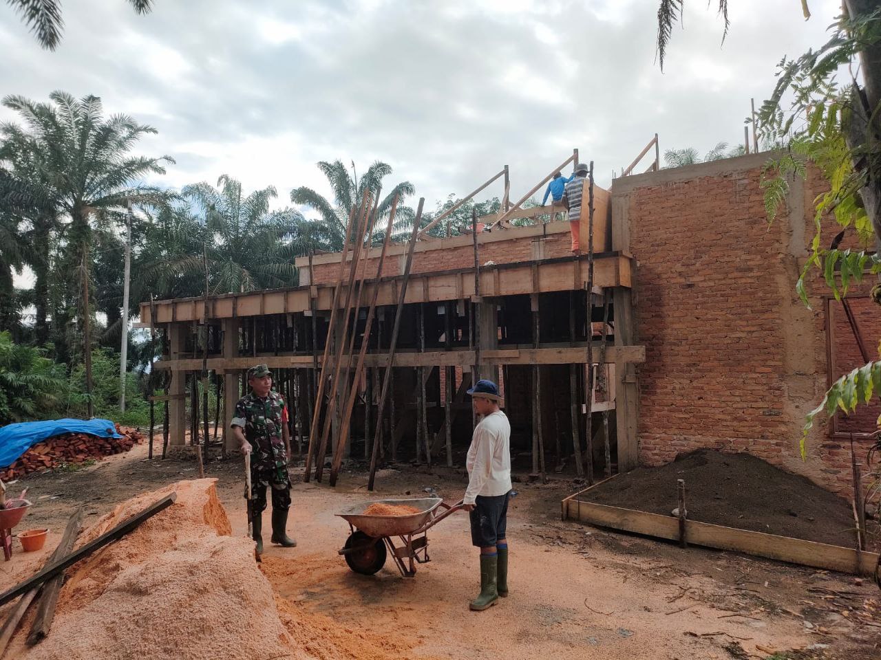 “hari ini kebetulan kita lewat ada beberapa warga sedang bekerja pembangunan rumah, jadi kita mampir untuk sekedar menjalin silaturahmi ataupun sekedar memberi himbauan tentang keselamatan kerja” papar Babinsa