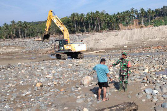 Batang Toru - Babinsa Koramil 01/Batang Toru Kodim 0212/Tapsel Sertu Nelwan Pane melaksanakan pendampingan normalisasi Sungai Batang Toru pasca bencana banjir bandang di desa Hapesong Baru dan Desa Telo Kecamatan Batang Toru Kabupaten Tapanuli Selatan, Rabu (04/02/2026)