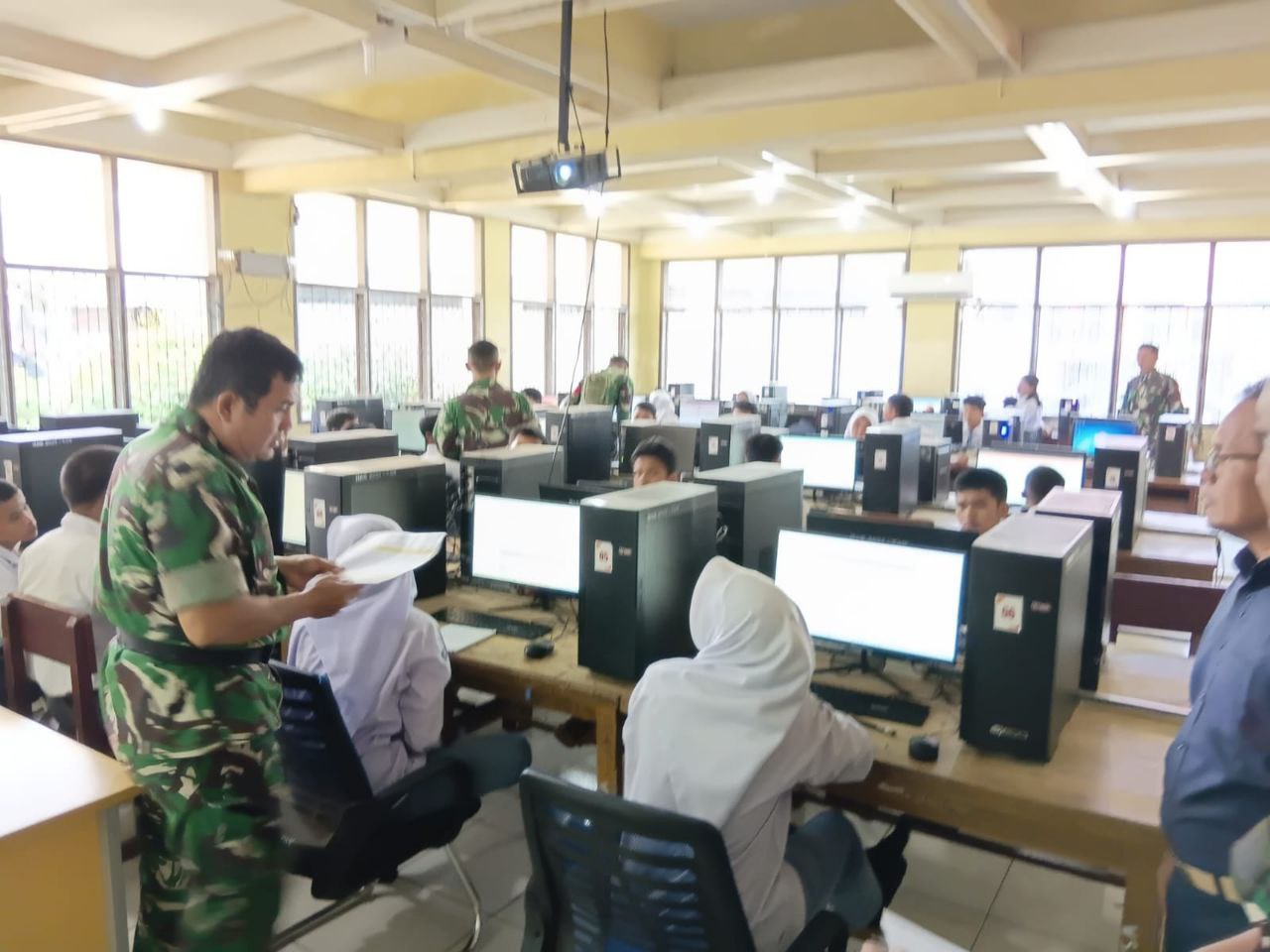 Pelaksanaan tes pemeriksaan Psikologi TNI turut diawasi oleh personel TNI dari Kodim 0212/Tapsel dipimpin Pelda Zulfian Hasibuan di Laboratorium Komputer sekolah masing-masing