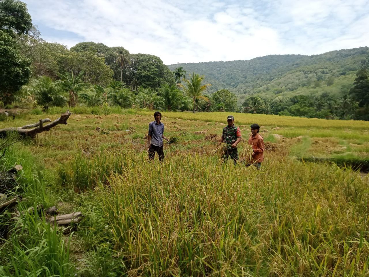 Batang Onag – Babinsa Koramil 07/Sosopan Kodim 0212/Tapsel Koptu Rudi Faisal Lubis melaksanakan monitoring dan pendampingan panen padi di Desa Batang Onang Baru Kecamatan Batang Onang Kabupaten Padang Lawas Utara, Kamis (05/03/2026)