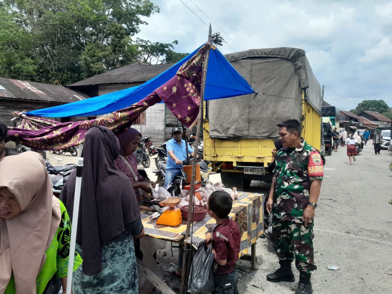 Saipar Dolok Hole - Menjelang hari raya Idul Fitri 1447 H, Babinsa Koramil 04/SDH Kodim 0212/Tapsel Serma Anton Pane melaksanakan monitoring dan pengecekan ketersediaan sembako serta harga sembako secara langsung di kios-kios dan pedagang yang ada di pasar tradisional di Kelurahan Aek Simotung Kecamatan Saipar Dolok Hole Kabupaten Tapanuli Selatan, Selasa (17/03/2026)